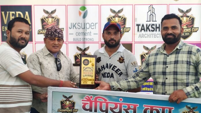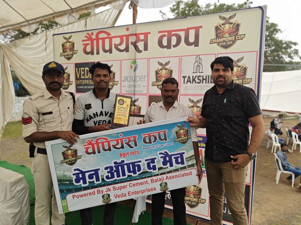 बैतूल:- लाल बहादुर शास्त्री स्टेडियम में चल रहे चैंपियंस कप 2025 के सातवें दिन रोमांचक मुकाबलों में महावीर वेदा, बैतूल अकादमी और महाकाल घोड़ाडोंगरी की टीमों ने बेहतरीन प्रदर्शन से दर्शकों का दिल जीत लिया। दिन के पहले मुकाबले में महावीर वेदा और किसान इलेवन आमने-सामने हुए, जिसमें किसान इलेवन ने टॉस जीतकर पहले बल्लेबाजी का न्योता दिया। महावीर वेदा ने निर्धारित 10 ओवर में 124 रन बनाए, जिसमें प्रवीण गंगारे ने 32 गेंदों पर 49 रनों की पारी खेली जबकि कप्तान सचिन काका ने मात्र 10 गेंदों पर ताबड़तोड़ 33 रन ठोके। जवाब में किसान इलेवन की टीम 9 ओवर में 101 रन बनाकर ऑलआउट हो गई और महावीर वेदा ने यह मुकाबला 23 रनों से अपने नाम किया। इस मुकाबले के मैन ऑफ द मैच सचिन काका रहे, जिन्होंने दो ओवर में मात्र दो रन देकर चार विकेट झटके। तुषार परिहार ने भी शानदार गेंदबाजी करते हुए दो ओवर में 16 रन देकर चार विकेट हासिल किए।